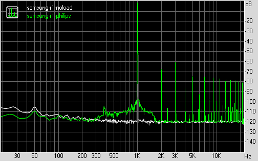 График искажений при измерении без нагрузки и при нагрузке наушниками Philips SHE 9850: