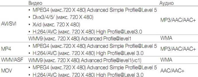 | Аудиоформаты | MP3, WMA, OGG, FLAC, WAV, APE |