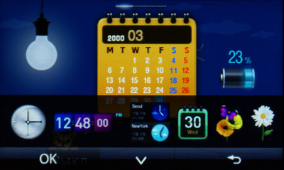 Меню оформлено так же, как и в P3, то есть вы можете сами настраивать расположение иконок и различных виджетов, перетаскивая их либо в пределах одного «окна», либо на два других, переключение между которыми происходит при помощи пролистывания пальцем.