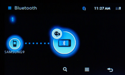 Возможности Bluetooth в этом плеере повторяют возможности этой технологии в прошлых моделях. Но они не так уж малы, надо заметить. Вы можете передавать файлы на другие устройства, слушать музыку в Bluetooth-наушниках, а также использовать плеер как гарнитуру для мобильного телефона. Последняя фишка вполне может использоваться на практике: вы можете слушать музыку, а когда зазвонит телефон, музыка прервется и вам будет предложено ответить на звонок. Говорить следует в этом случае в микрофон плеера. На другом конце жалуются на немного глухой звук, но это не критично, собеседник вполне сносно слышит вас, а вы его. Громкость при разговоре можно регулировать. Вот как выглядит интерфейс телефона: