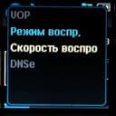 Во время воспроизведения на дисплее отображается маленькая обложка альбома, название файла, полоса прогресса, установки эквалайзера, скорости и режима воспроизведения. В контекстном меню скрываются настройки всего вышеназванного. Можно изменить режим воспроизведения, выбрать один из 10-ти предустановленных режимов эквалайзера (свои создавать нельзя), а также увеличить или уменьшить темп воспроизведения. Когда вы прослушиваете не собственноручно закачанную музыку, а записанные файлы, доступным становится пункт VOP. Когда он включен, воспроизводится только голос, посторонние шумы подавляются — не при записи, а именно при воспроизведении. Но не понравилась эта функция тем, что когда голоса нет, сильно «выпячиваются» и давят на уши шумы.