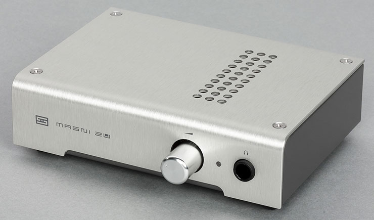Класс усиления — AB, тракт построен на полевых/биполярных транзисторах, с неизменной глубиной обратной связи во всем диапазоне звуковых частот, все каскады связаны по постоянному току. На лицевой стороне расположено гнездо для подключения «большого» 6,3-миллиметрового штекера наушников, поворотный аналоговый регулятор громкости и такой же светодиод как на ЦАПе, только в единственном числе — горит он при включении усилителя тумблером на задней панели. Также на задней панели есть переключатель уровня усиления: Hi/Lo. Для высокоомных наушников его надо ставить в позицию Hi. Особо хотелось бы отметить наличие не только входа, но и выхода. Таким образом можно организовать сквозной канал и не перетыкать кабели. Например, включить усилитель между ЦАПом и предусилителем и использовать по мере надобности. При подключении наушников выход обесточивается. В процессе тестирования Modi 2 почти не нагревался, а Magni 2 грелся больше, но в пределах разумного.