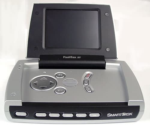 Внешне комбайн, разумеется, отличается от всех моноблочных устройств, но и от Phototainer отличия есть. Если последний был относительно узок и «глубок», а слот CF располагался на стороне, обращенной к пользователю, то FlashTrax XT вытянут в ширину. Слот для карт также располагается на одной из узких сторон, но теперь это уже бок устройства. Кнопки управления, позволяющие использовать устройство как аудиоплеер, не открывая экран, переехали с одной из боковин на переднюю грань, разъемы, соответственно, с другой боковины на задний торец.