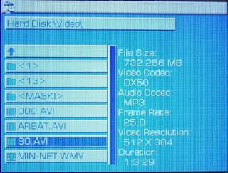 В качестве допустимых видеофайлов воспринимается достаточно широкий список расширений: ASF, AVI, MP4, WMV и MOV. На практике же поддержка сильно зависит от того, какие кодеки использованы. Нормально воспринимается MPEG4 Simple Profile (в версиях DivX 4.0+ или XviD 1.0) или DivX 3.x, а также WMV9 Simple Profile. Разумеется, в случае первых форматов полноценная поддержка возможна только при использовании для кодирования звука поддерживаемых устройством кодеков: в противном случае видео вы увидите, а вот звука не будет (так поведут себя, к примеру, файлы с дорожкой в АС3, которая вызывает большие проблемы у подавляющего большинства портативных и стационарных плееров). Поддержка MOV заключается в работе с файлами QuickTime 6, где видео закодировано в MPEG4, а звук в ААС.