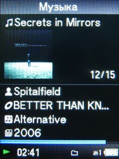 Мы немного отвлеклись; продолжим говорить о воспроизведении музыки. Во время воспроизведения композиции отображаются: имя файла, обложка альбома (при ее отсутствии отображается логотип Walkman), имя альбома, исполнителя, песни, прогресс-бар, режим воспроизведения и заряд батареи. Как видим, достаточно много информации.
