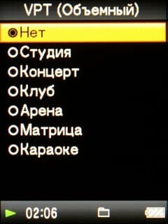 Имеются настройки трехмерности звучания, их всего 6 штук. Хочется отметить только один из них — «Караоке», суть которого весьма понятна из названия — плеер пытается подавить голос исполнителя, оставляя кое-как различимую музыку.