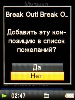 «Добавить в список пожеланий» — функция, назначение которой нам сталось не очень понятным. По сути, музыкальные библиотеки а-ля Windows Media Player при подключении плеера должны сканировать на наличие таких «пожеланий» и предлагать пользователю купить другие треки или альбомы текущего исполнителя.