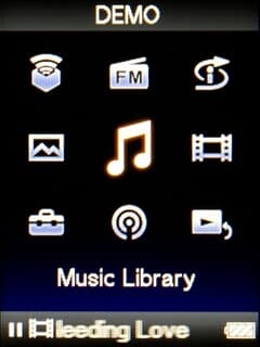 Главное меню разделено на 9 иконок. Обычно в плеерах каждая иконка включает какую-либо функцию. А здесь только 4 штуки отвечают за музыкальный плеер, не считая пункта Podcast. При описании музыкального проигрывателя мы обратим внимание на детали. Также имеется пиктограмма FM -приемника, видеопроигрывателя, просмотрщика картинок, меню настроек.