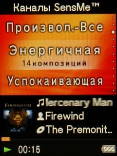 Но по части музыкальных фишек это еще не все. В главном меню имеется пункт «Каналы SensME». На основе анализа, который может быть выполнен либо с помощью специальной программы на компьютере, либо из меню самого плеера, эта функция упорядочивает музыку в различные категории, такие как Утро, День, Полночь, Ночь, Энергичная, Успокаивающая, Радостная, Электронная, Классическая, Экстремальная и т.д. Музыка, соответствующая (по мнению программы) определенному настроению, ритму и иным параметрам, попадает в соответствующую категорию. Функция работает достаточно интересно, и пользоваться ею можно.