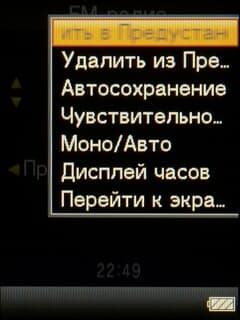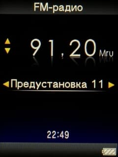 Реализация данной функции стандартна, никаких особенностей не имеет. Есть автопоиск, который, к слову, работает не очень хорошо — при установленной в настройках высокой чувствительности, часто записывает две рядом стоящие частоты, например, в 13-й ячейке записано значение в 92,35 МГц, а в 14-й — 92,40 МГц. При низкой чувствительности, наоборот, — многие нужные частоты пропускает. Но можно запоминать станции вручную. Доступно 30 ячеек.