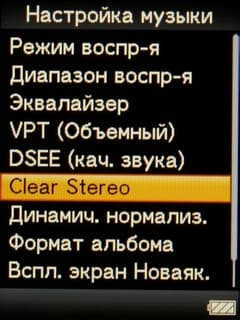 Функция DSEE призвана «повышать качество звучания файлов, сжатых с потерями качества». В работе она не произвела впечатления: высокие частоты на низкобитрейтных (128-192 кбит/с) файлах как звучали достаточно сжато, так и звучат, но с несколько другим оттенком, на оригинал все равно не похожим.