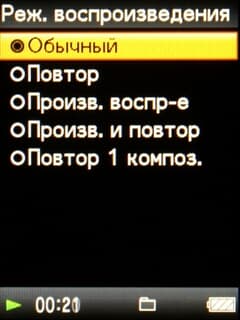 Нажатием на Options вызывается контекстное меню, которое позволяет настроить множество параметров, не углубляясь далеко, что очень удобно. Первым пунктом идет выбор режима воспроизведения. Их стандартный, скупой набор — обычный, повтор, произвольное воспроизведение, произвольное воспроизведение и потом повтор, повтор одной композиции. Но, к счастью, это еще не все по части управления порядком воспроизведения треков. Далее, в меню идет пункт «Диапазон воспроизведения», который может быть настроен на «Все диапазоны» и «Выбранный диапазон». Поясним, что это значит. Например, в категории «Артист» вы выбрали группу U 2. У вас есть несколько ее альбомов, вы выбрали какую-то песню из какого-то альбома. Подавляющее большинство плееров крутило бы этот альбом по кругу, или остановилось бы после последнего трека. Чтобы далее воспроизводились другие альбомы не только U 2, но и других исполнителей, есть режим «Все диапазоны».