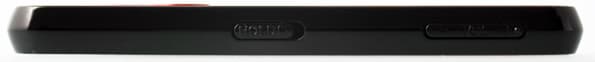 На правом торце находится ползунок блокировки и качелька для управления громкостью. От обоих — только положительные впечатления. Ползунок передвигается очень легко, но при этом с ощутимым щелчком. Не надо подцеплять его ногтем, достаточно просто движения пальца. И качелька громкости сделана добротно — кнопки достаточно тугие, но это даже удобно, каждое нажатие четко ощущается. На кнопке «+» имеется рельефная точка, которая помогает при управлении вслепую.