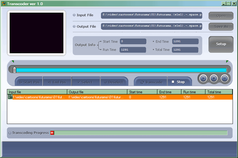 Главное окно выглядит просто и незатейливо: выбираем файл, при необходимости меняем имя или место файла-приемника, нажимаем кнопку и вперед. Перекодирование, к сожалению, идет в реальном времени, то есть долго, но все это время можно заодно и просматривать перекодируемый файл.