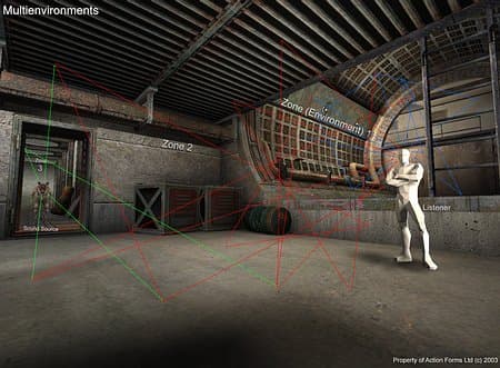 Для создания полного ощущения погружения в игру необходимо рассчитать акустическую среду окружения и ее взаимодействие с источниками звука. По мере распространения звука, звуковые волны вступают во воздействие со средой, в которой распространяются. При распространении звуковые волны достигают слушателя различными путями: