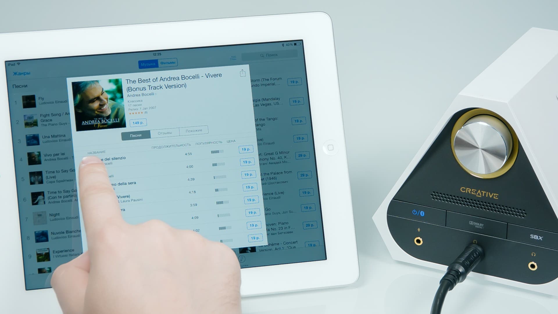 При работе с iPhone или iPad есть два варианта подключения: проводное USB 2.0, с одновременной подзарядкой аккумулятора, и беспроводное, по Bluetooth, позволяющее слушать музыку, сидя в кресле.