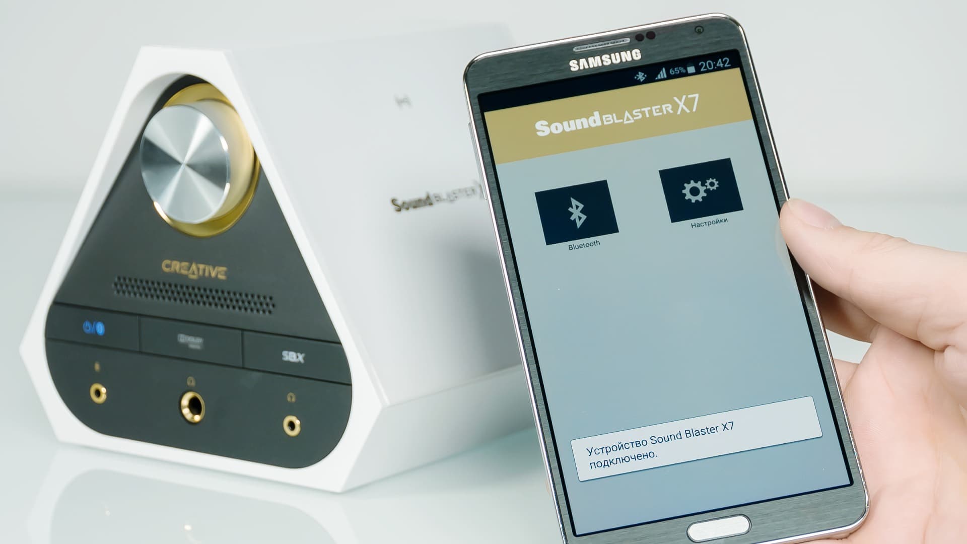 Сценарий 3. Качественный ЦАП и наушниковый усилитель. Использование без компьютера. Медиабиблиотека хранится на мобильном устройстве или в сетевом накопителе, с возможностью воспроизведения с мобильного устройства. Sound Blaster X7 в этом случае может подключаться двумя способами: проводным и беспроводным. Причем оба способа возможны для устройств как с iOS, так и с Android! Такие возможности встречаются не часто. С Android, естественно, существуют определенные нюансы. Список гарантированно совместимых моделей составляют преимущественно новые и топовые телефоны.