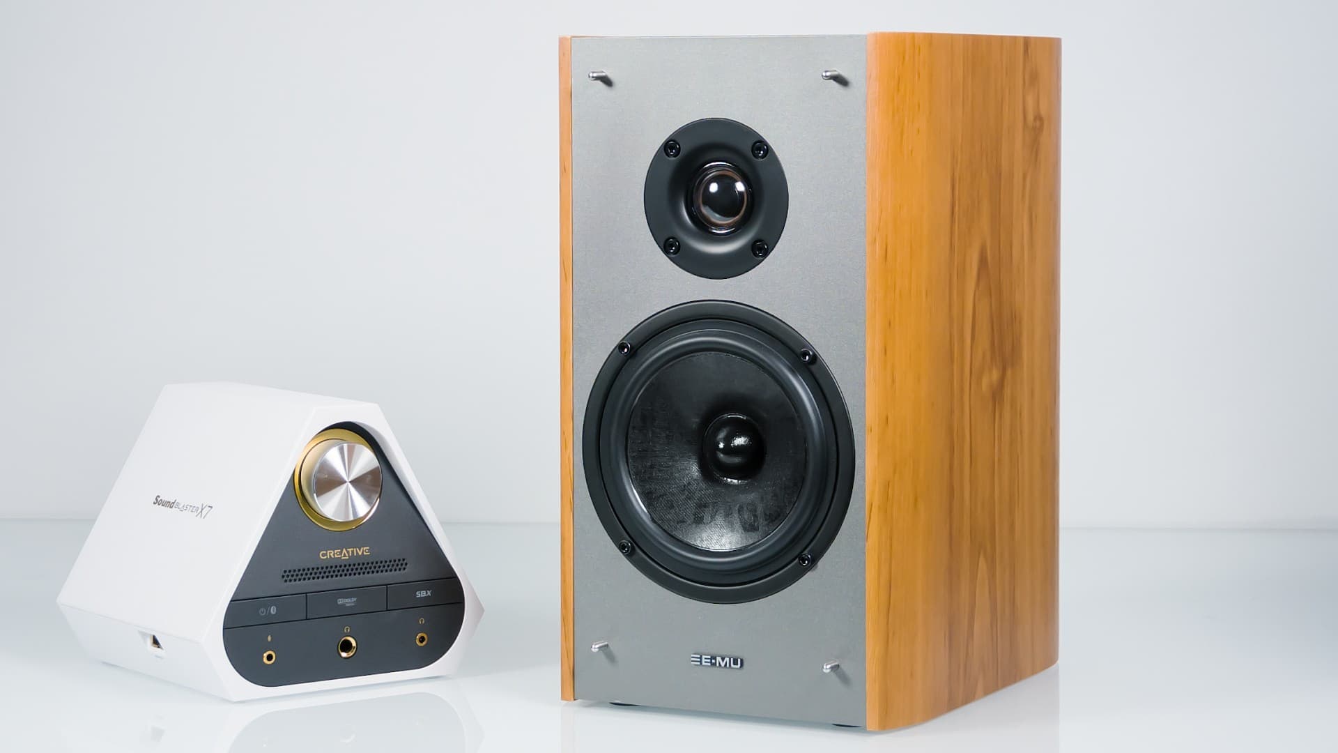 Появление в 2015 году пассивных 5-дюймовых полочников E-MU XM7 в корне изменило ситуацию. Хорошая новость: в компании поставили действительно конкурентоспособные динамические головки, сохранив при этом и доступную цену. Creative Sound Blaster X7 имеет специальный режим работы совместно с колонками E-MU XM7, но может использоваться и с другими акустическими системами. Впрочем, плюс тут как раз в том, что купив комплект, пользователь снимает с себя проблему поиска отдельных компонентов, получая гарантированно приличный звук. Вот на таких пользователей и рассчитан набор Creative.