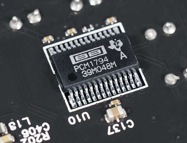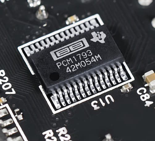Зато очень неожиданно Creative поставил два выделенных ЦАП TI PCM1793. Это немного упрощенная версия старших моделей, но также с высокими параметрами. Для каналов 5.1-конфигурации — очень неплохо!