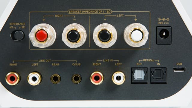 Номинальная мощность для 4 Ом — 33 Вт при искажениях 0,05% и 37 Вт при 1%. Для нагрузки 8 Ом мощность снижается до 22 Вт при 1%. Устройство имеет переключатель импеданса 4/8 Ом на задней панели. Обычная модель комплектуется БП на 70 Вт, что все равно дает приличную мощность 30 Вт при 0,05% искажений и 35 Вт при 1% искажений. Огромный плюс этого усилителя мощности — компактность и энергоэффективность. Именно эти причины могут заставить отказаться от традиционного усилителя или ресивера.