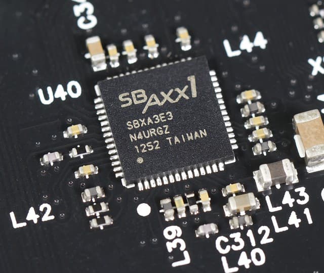 SBaxx1 — многоядерный процессор аппаратной обработки звука. Напомним, что когда Creative перепрыгнул через 2 поколения техпроцесса, по сравнение с чипами E-MU10K/20K этот новый чип получился малюсеньким и непрезентабельным. Отказ от прежней интересной архитектуры был вызван утратой актуальности аппаратного 3D-звука в играх и невозможностью реализации аппаратного декодера Dolby Digital. 3D-звук реализуется картой программно, но он не особенно нужен, так как в играх все технологии стали программными, и возможности карты больше никто не задействует.