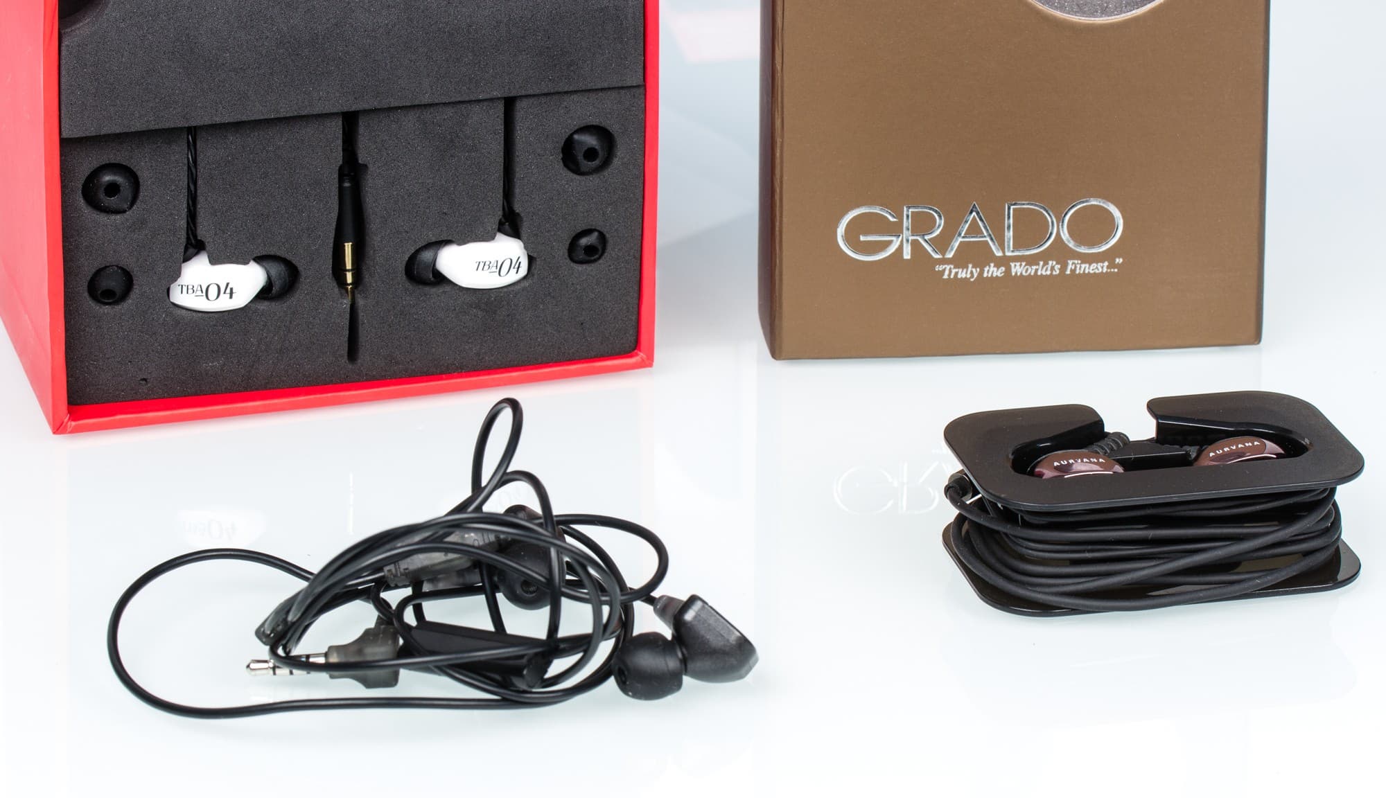 В качестве внутриканальных наушников (IEM, «затычки») мы попробовали Grado GR10 (20 тыс. рублей), Fisher Audio TBA04 (10 тыс. рублей), Sennheiser IE-8i (12 тыс. рублей), Creative Aurvana in-Ear3 (6 тыс. рублей).
