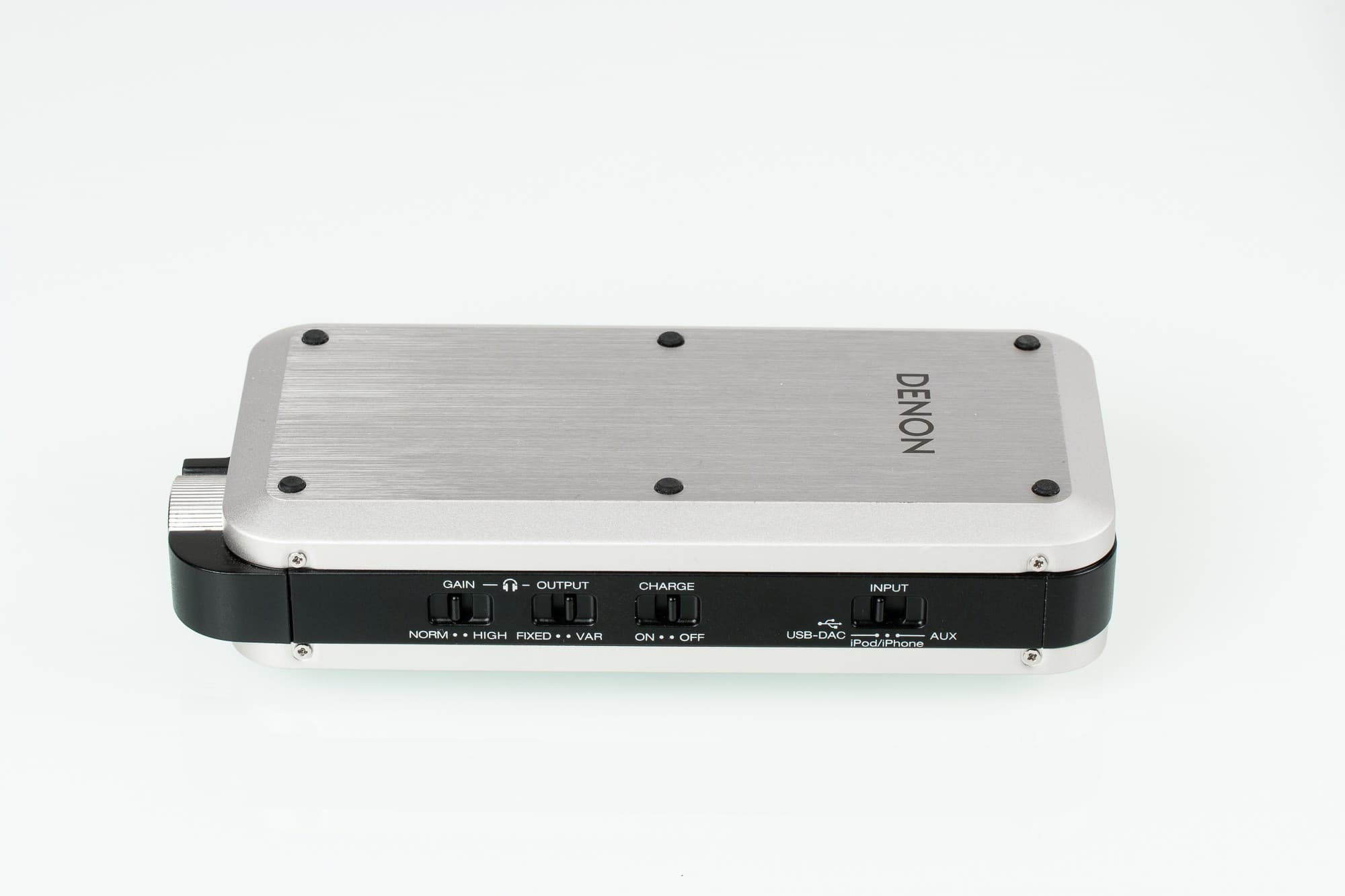 Устройство выполнено из пластика с декоративными алюминиевыми накладками и ручкой. Корпус выполнен толстым намеренно — чтобы в режиме звуковой карты было удобно крутить ручку громкости. Denon DA-10 сделан очень добротно, комплектуется ASIO-драйвером и недешев по цене. Чувствуется, что это устройство очень высокого класса, призванное конкурировать с самыми дорогими моделями, не опускаясь в массовый рынок. В комплекте даже идут провода для iOS-устройств — как с разъемом Lightning, так и 30-контактный. Все выглядит максимально продуманным.