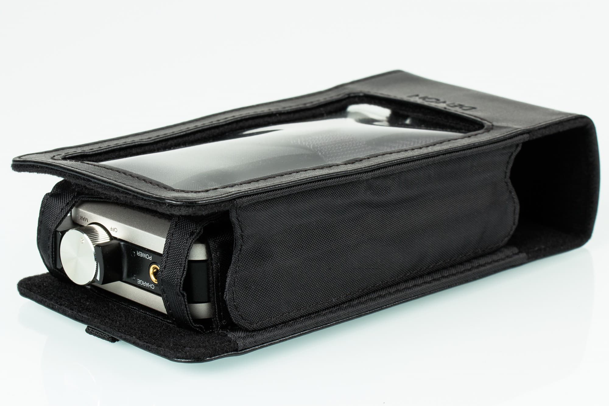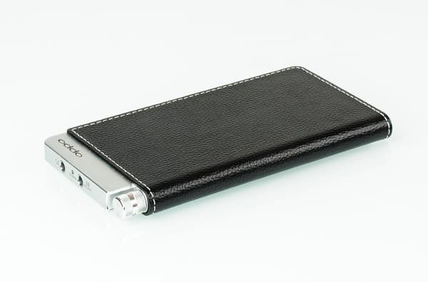 ЦАП основан на TI PCM1795 — это любимая микросхема японцев из Denon. Этот 32-битный преобразователь умеет играть PCM до 192 кГц и даже DSD64/128. Заявлено, что цифровая фильтрация производится за счет специальной фирменной технологии AL32 advanced DSP. Но больше всего нас поразил гигантский двухсекционный кожаный чехол в комплекте, который рассчитан на ношение и ЦАП, и смартфона сразу.