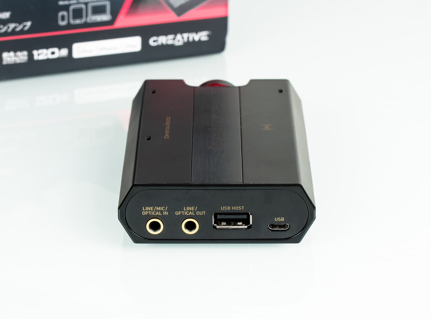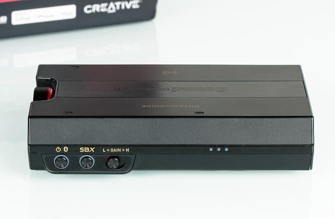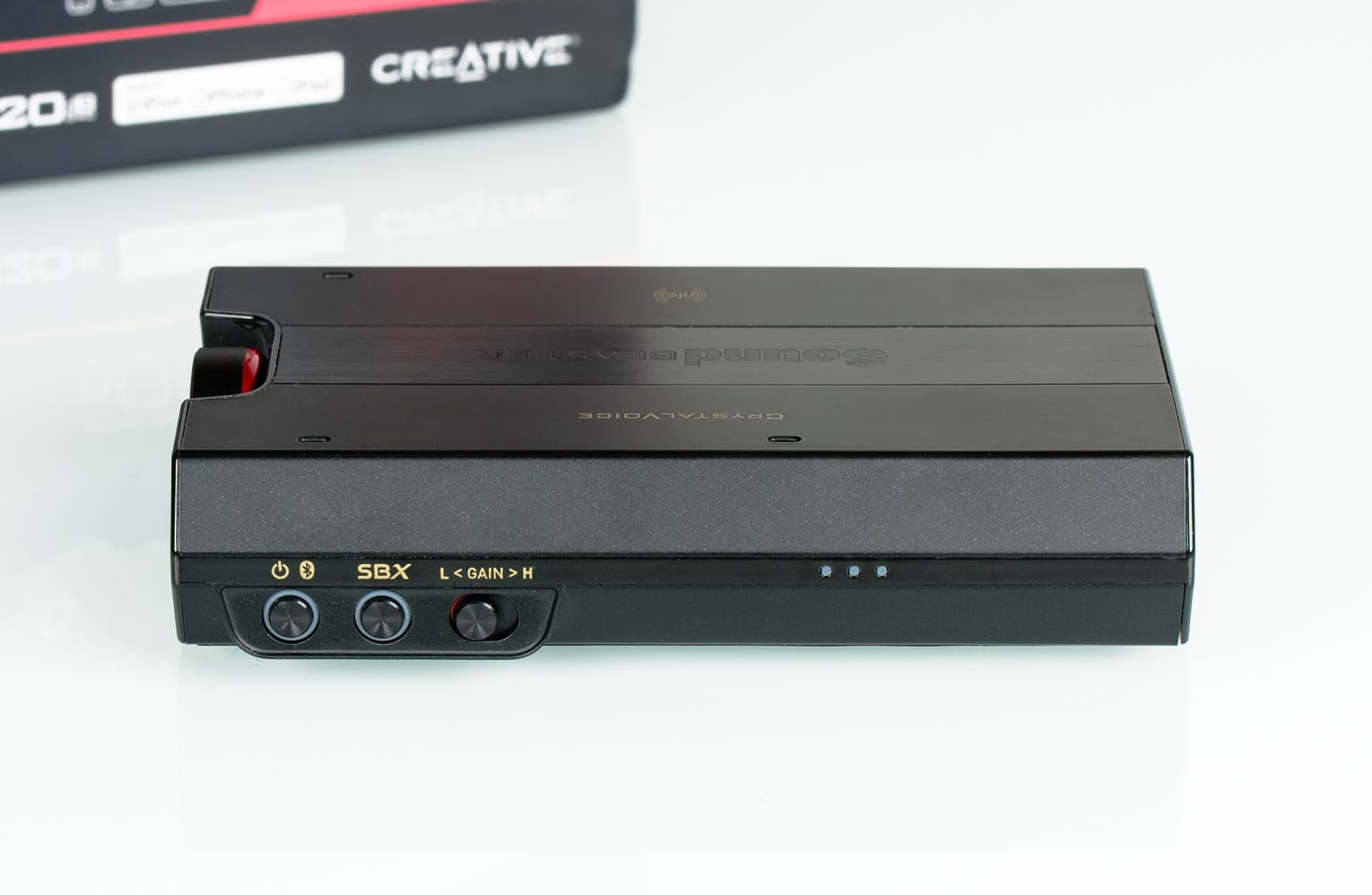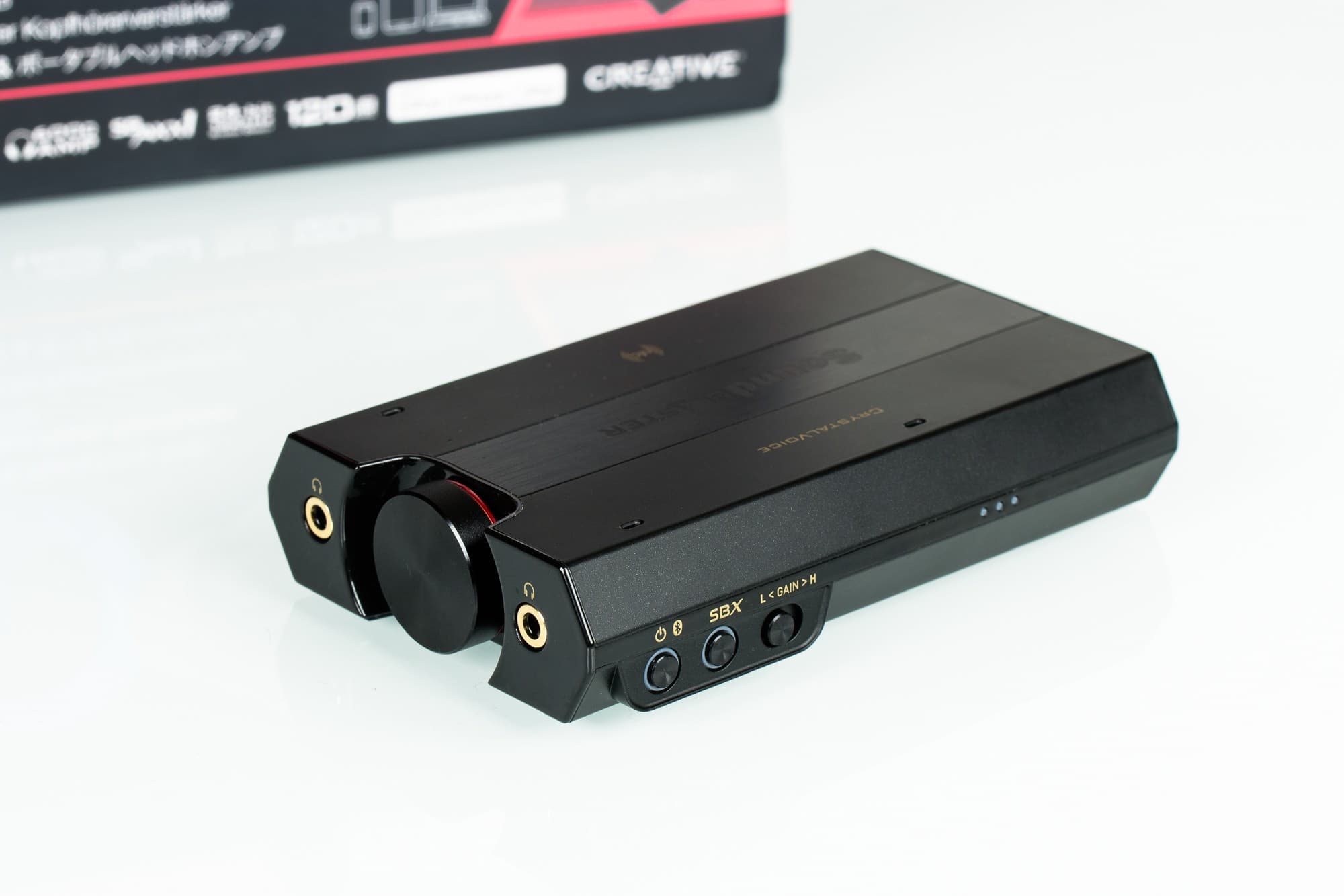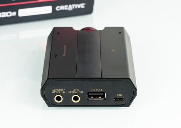 Это новая, наиболее продвинутая модель производителя, с 4-ядерным DSP-процессором на борту, с аппаратным эквалайзером и тонной обработок Creative. При подключении к компьютеру Sound Blaster E5 превращается в полноценную звуковую карту с АЦП, драйверами, внутренним микшером, входом для гарнитуры, линейным входом и всем прочим. При подключении к смартфону или планшету — это полноценный USB ЦАП с батарейкой внутри. Есть выделенный полноразмерный USB-вход для iOS/Android-устройств. Micro-USB — только для компьютера и подзарядки батарейки. Есть и Bluetooth для беспроводного использования, например в качестве гарнитуры — в карту встроены микрофоны. Для iOS/Android есть специальное приложение, которое управляет всеми настройками внутреннего процессора с мобильного телефона.