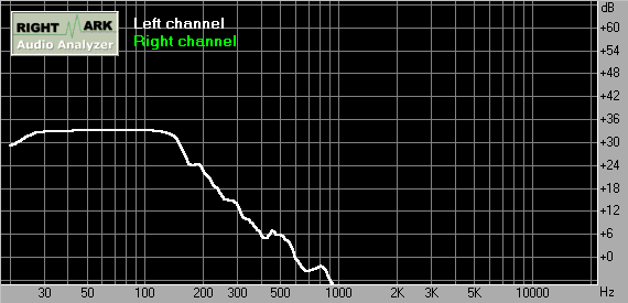 На этом графике АЧХ мы можем видеть ровную прямую до 150 Гц. Необходимо только учитывать, что такие результаты были получены в непосредственной близости микрофона от сабвуфера. Для избежания изломанности АЧХ необходимо экспериментальным путём подбирать оптимальное положение сабвуфера в комнате.