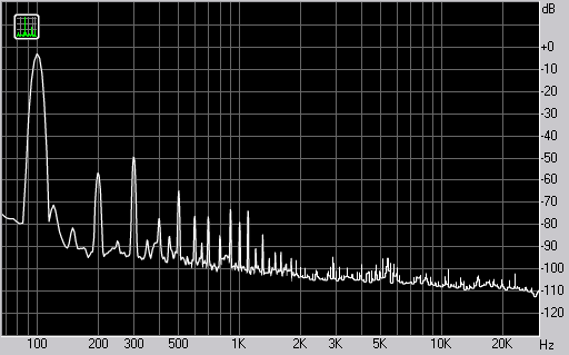 Спектр сигнала, воспроизводимого колонкой при подаче частоты 100 Гц