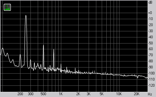 Спектр сигнала, воспроизводимого колонкой при подаче частоты 250 Гц