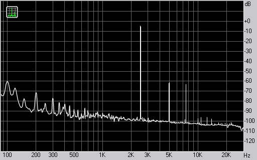 Спектр сигнала, воспроизводимого колонкой при подаче частоты 2,5 кГц