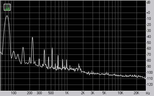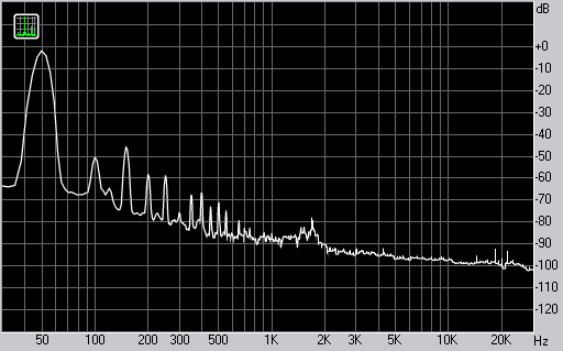 Спектр сигнала, воспроизводимого колонкой при подаче частоты 50 Гц