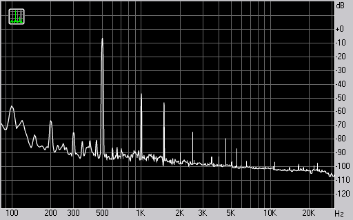 Спектр сигнала, воспроизводимого колонкой при подаче частоты 500 Гц