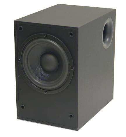 Корпус сабвуфера изготовлен из фибролита. Акустическое оформление саба выполнено по фазоинверторной схеме. Диффузор НЧ-динамика выведен на переднюю панель, отверстие ФИ – на боковую. Диаметр диффузора составляет 12,5 сантиметров. Сабвуфер подключается к усилительному блоку проводом длиной 1,3 метра.