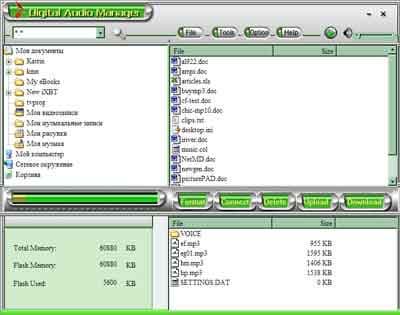 В принципе, для записи файлов в память плеера можно использовать любые средства, такие как FAR или Windows Explorer. Однако специальная программа-менеджер на CD имеется.