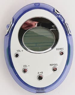 Плеер имеет редко встречающуюся овальную форму. Его максимальные размеры — 79 × 62 × 15 мм, хотя из-за формы выглядит устройство куда более компактным. Масса устройства тоже невелика — всего 37 граммов (как у компактных моделей), батарейка типа ААА увеличивает ее незначительно. О множестве вариантов исполнения придется забыть — доступна только модель с 64 Мбайтами памяти и только одного цвета. Дисплей симпатичный, но простенький — даже тэги не отображает. При всем при этом плеер снабжен достаточно мощным декодером, диктофоном, имеет удобное управление, при подключении к компьютеру эмулирует дисковый накопитель и поддерживает обновление управляющей микропрограммы. В общем, с одной стороны — простота и изящный дизайн, отлично подходящий прекрасному полу, с другой — не самая худшая функциональная начинка. Рассмотрим устройство более подробно.
