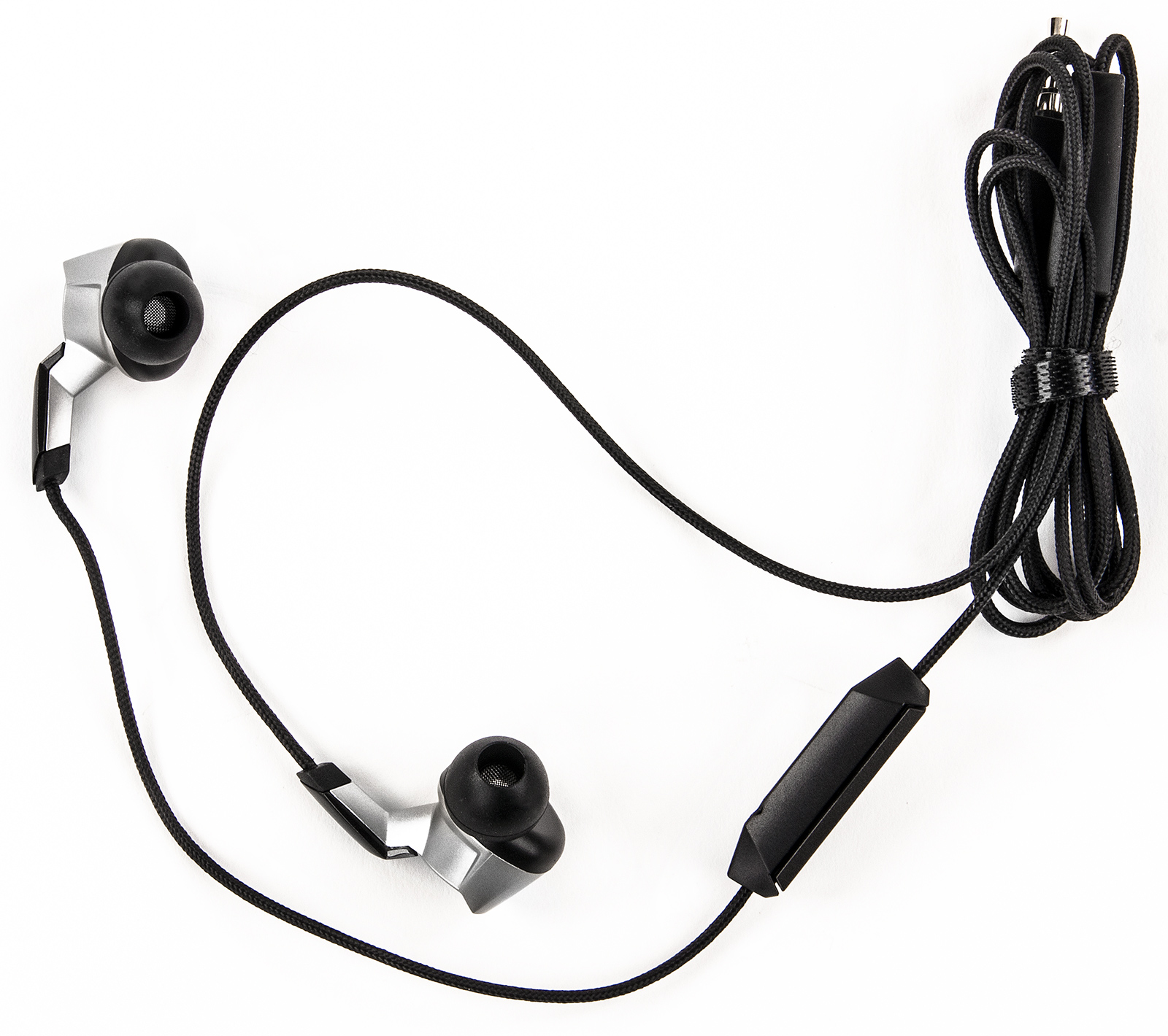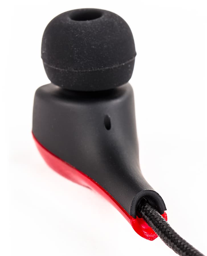 Текстильная оплетка шнура, наличие микрофона, а также насадок из пеноматериала — совокупность этих черт, не свойственная бюджетному сегменту, подкрепляет именитый бренд.