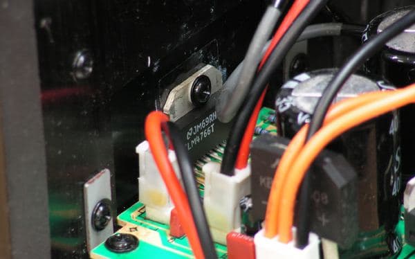 Усилитель сделан на базе LM4766T. Согласно измерениям, усилитель развивает до 22 Вт на нагрузке 11 Ом относительно 1 кГц, без появления искажений, свидетельствующих о режиме нелинейности. Данные по мощности интересны только для исследования спектра в рабочих режимах для АС, так как громкость зависит от чувствительности колонок, и искажения от громкости исследуются в отдельном тесте. Развиваемая мощность усилителя в режиме перегрузки не исследуется.