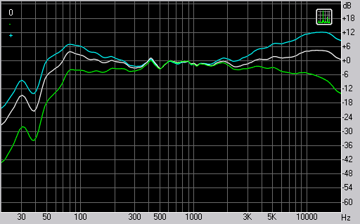 График АЧХ колонки Vigoole C2128, измеренный при разных положениях регуляторов тембра