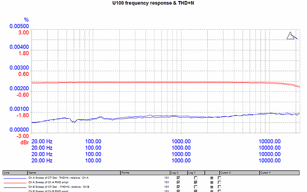 Заявлено, что схемотехника U100 явилась результатом доработок после проведения многочисленных слуховых тестов и измерений.