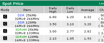 DDR SDRAM: минимальный уровень цен за последние два месяца