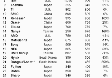 Рейтинг компаний в терминах капзатрат в области полупроводников