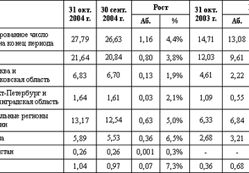 Абонентская база МТС в октябре 2004 года