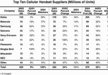 Предварительные прогнозы IC Insights о результатах 2004 года