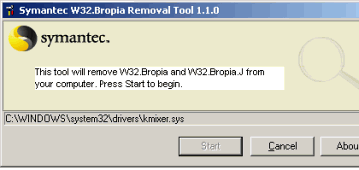 Антивирусы: Symantec W32.Bropia Removal Tool v.1.1.0