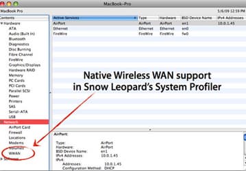 Snow Leopard включает в себя средства поддержки «родных» адаптеров сетей 3G