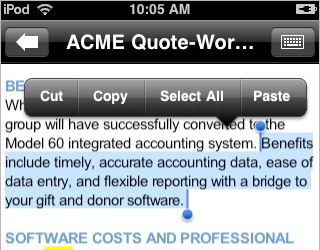 Пакет Documents To Go 1.1 для iPhone получил поддержку стандартных операций Copy/Paste