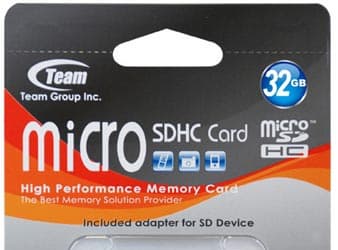 Объем карточки формата microSDHC, выпущенной компанией Team, равен 32 ГБ